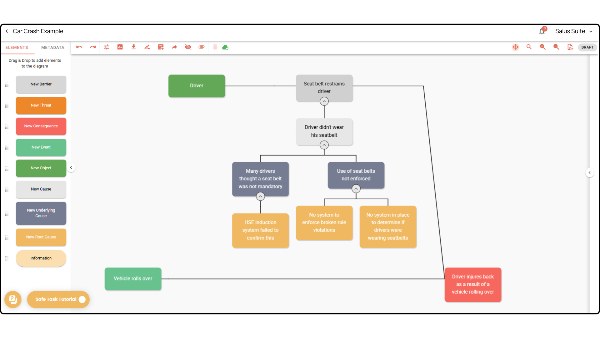 Step 2: Once in place you can start further building out the investigation, adding a ‘New Barrier’ /s and conducting a root cause analyse.