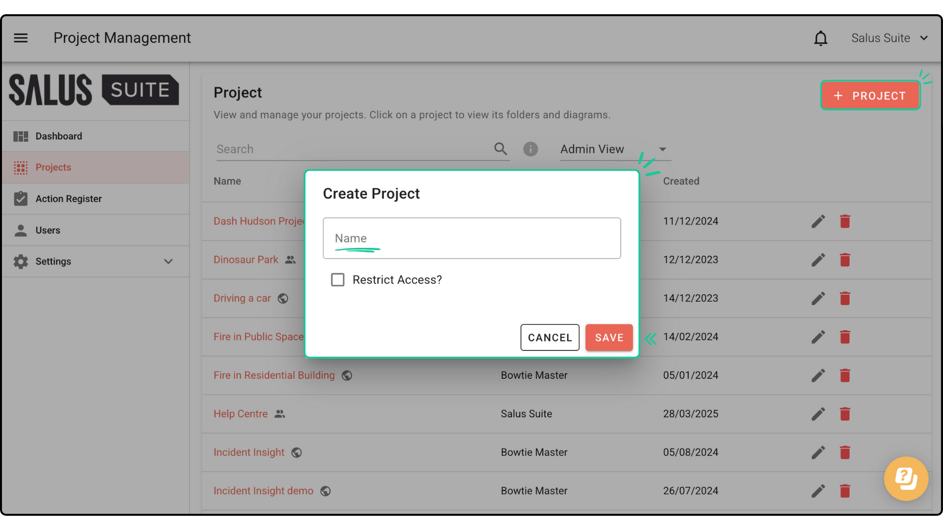 Step 1: Head to the Project Menu and click + Project. Enter a name for your project, then click Save.