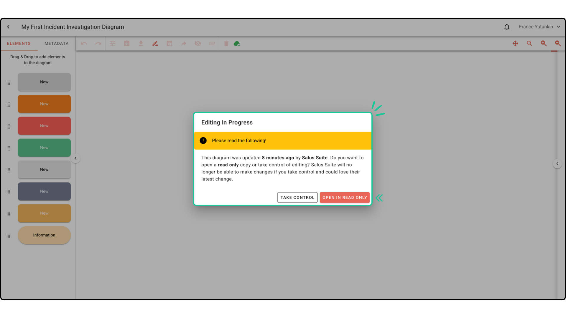 Incident Insight allows multiple users to edit the same diagram. However, users cannot edit a diagram at the exact same time. Users may enter into Read Only mode or Take Control.