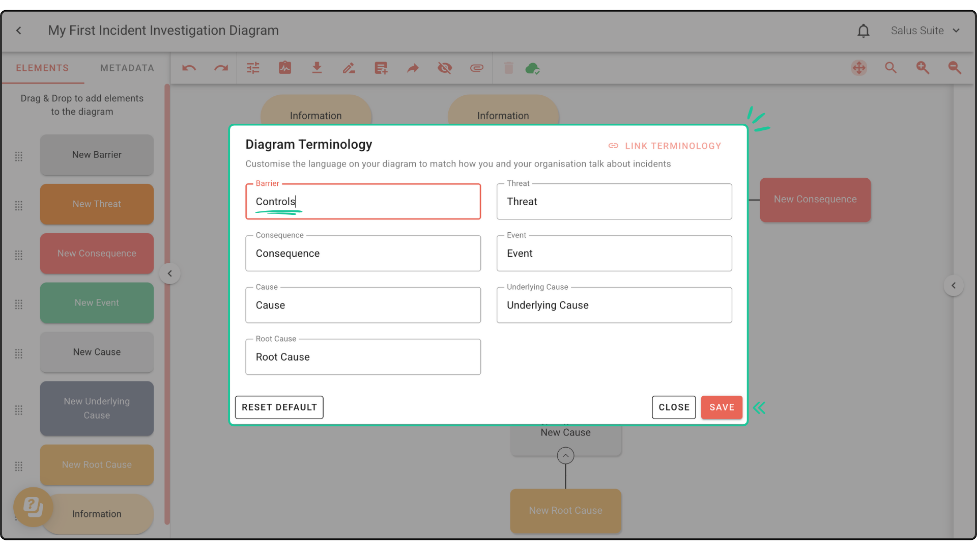 Step 3: Customise terms. For this example, we will rename Barrier to Controls. Click Save.