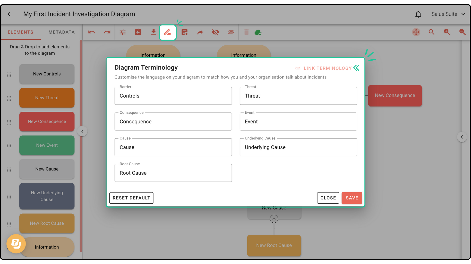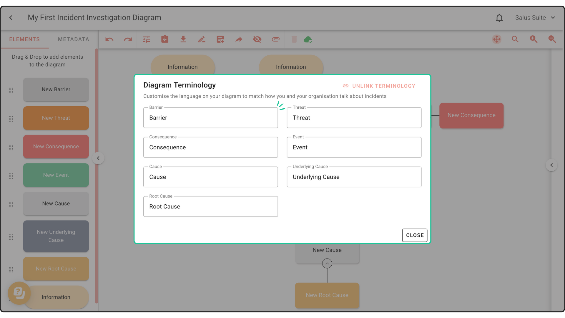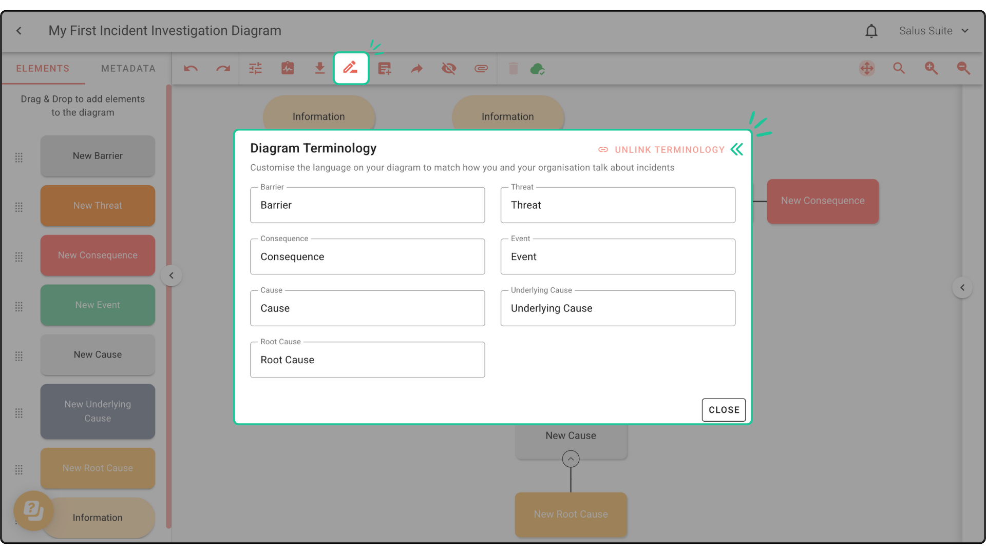 In this guide, we will show you how to customise the terminology in a specific diagram.Â