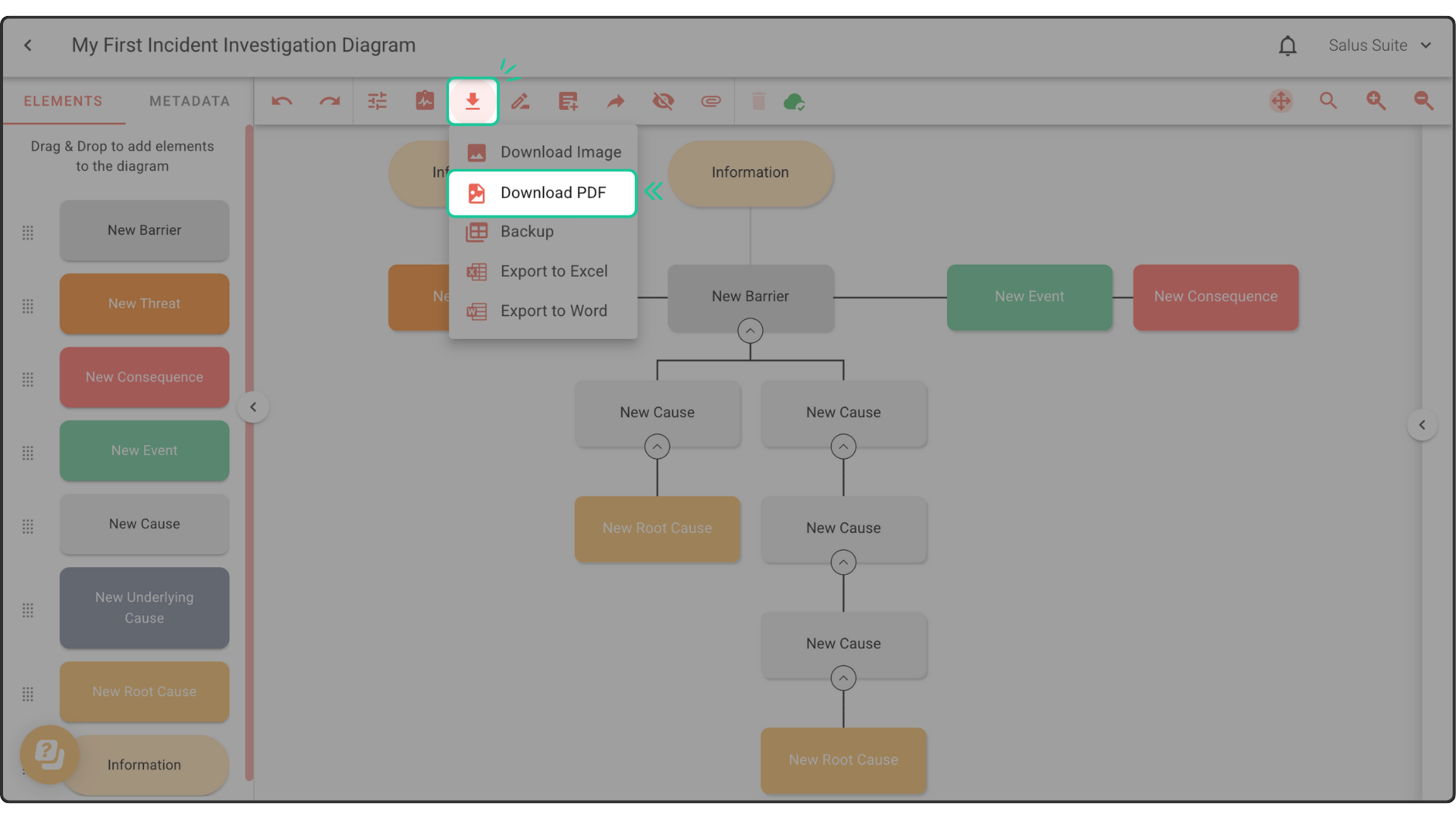 Incident Insight allows you to download your diagram in a PNG or PDF format.