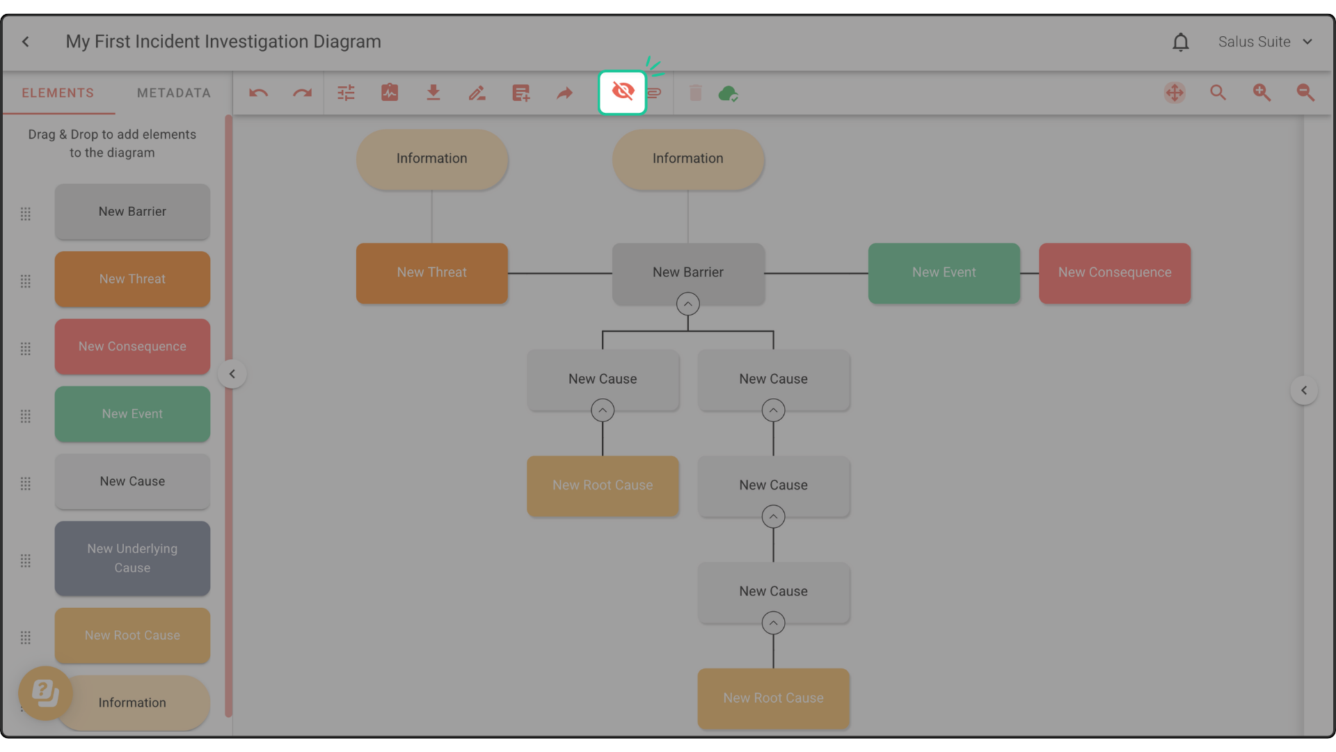 Incident Insight allows you to focus on just the Threat, Barrier, Event, and Consequence with the Hide All feature.