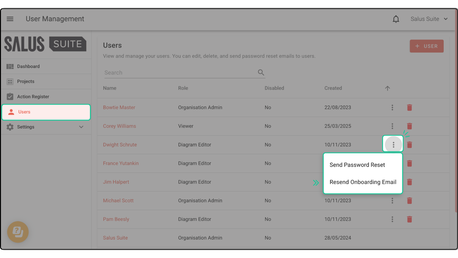 Step 2: Navigate to the User you wish to resend the onboarding email to and click on the ellipsis. Click on Resend Onboarding Email.