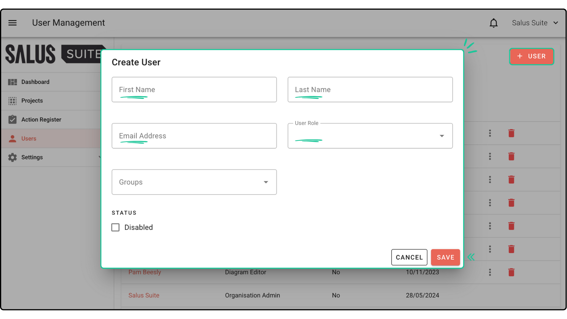 Step 2: Complete the required fields and choose the user’s role from the drop-down menu. Click Save.Â