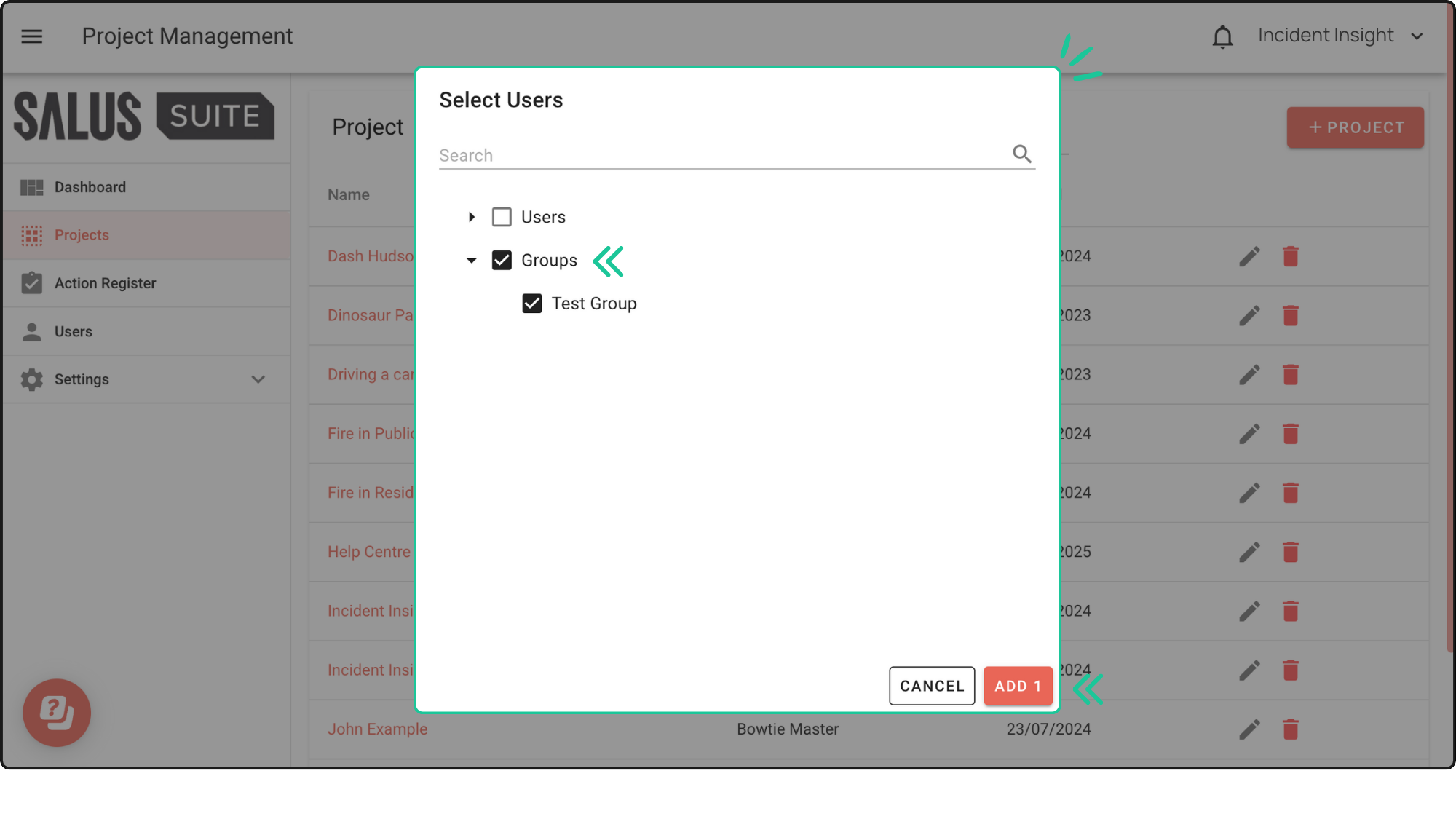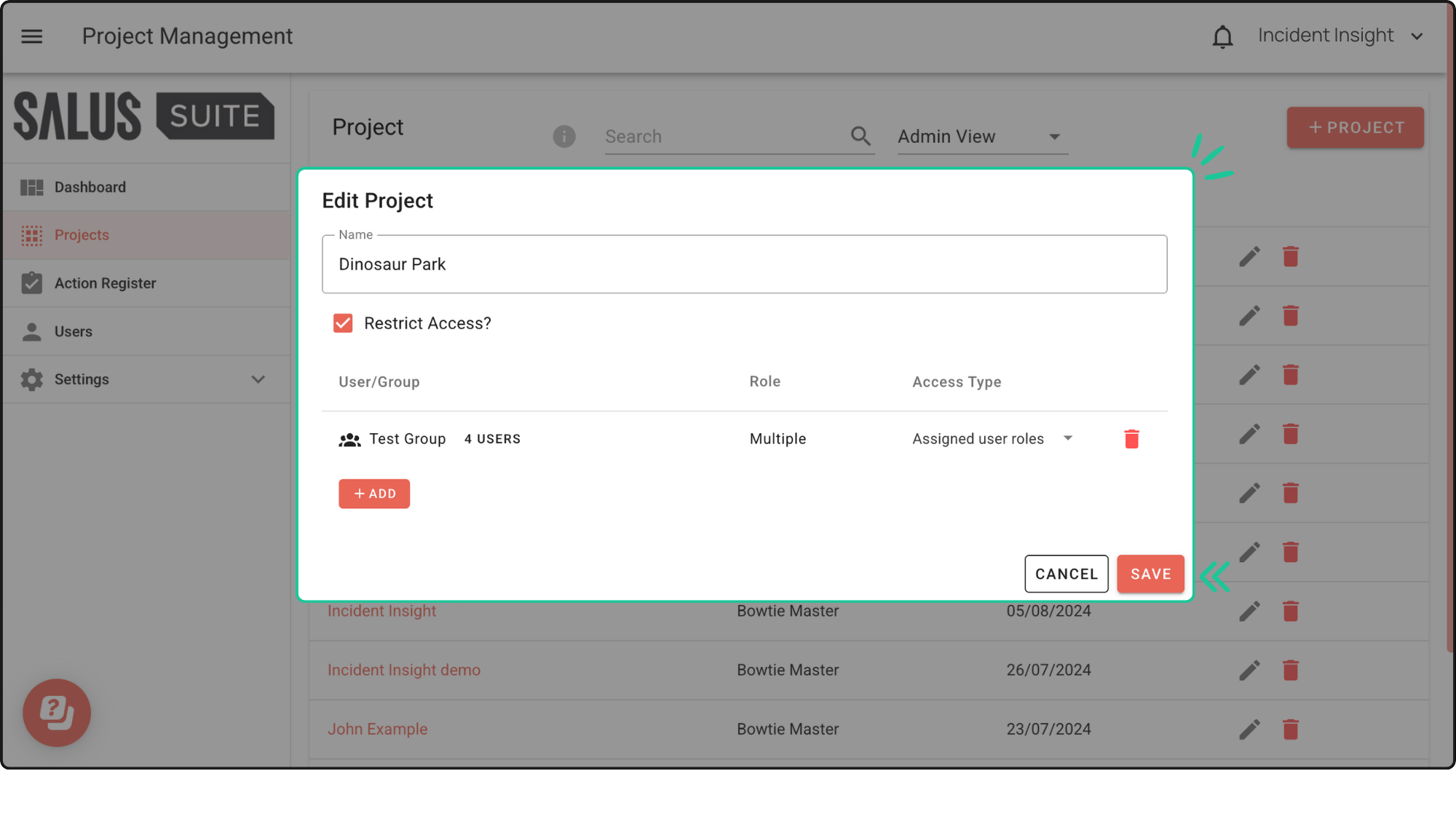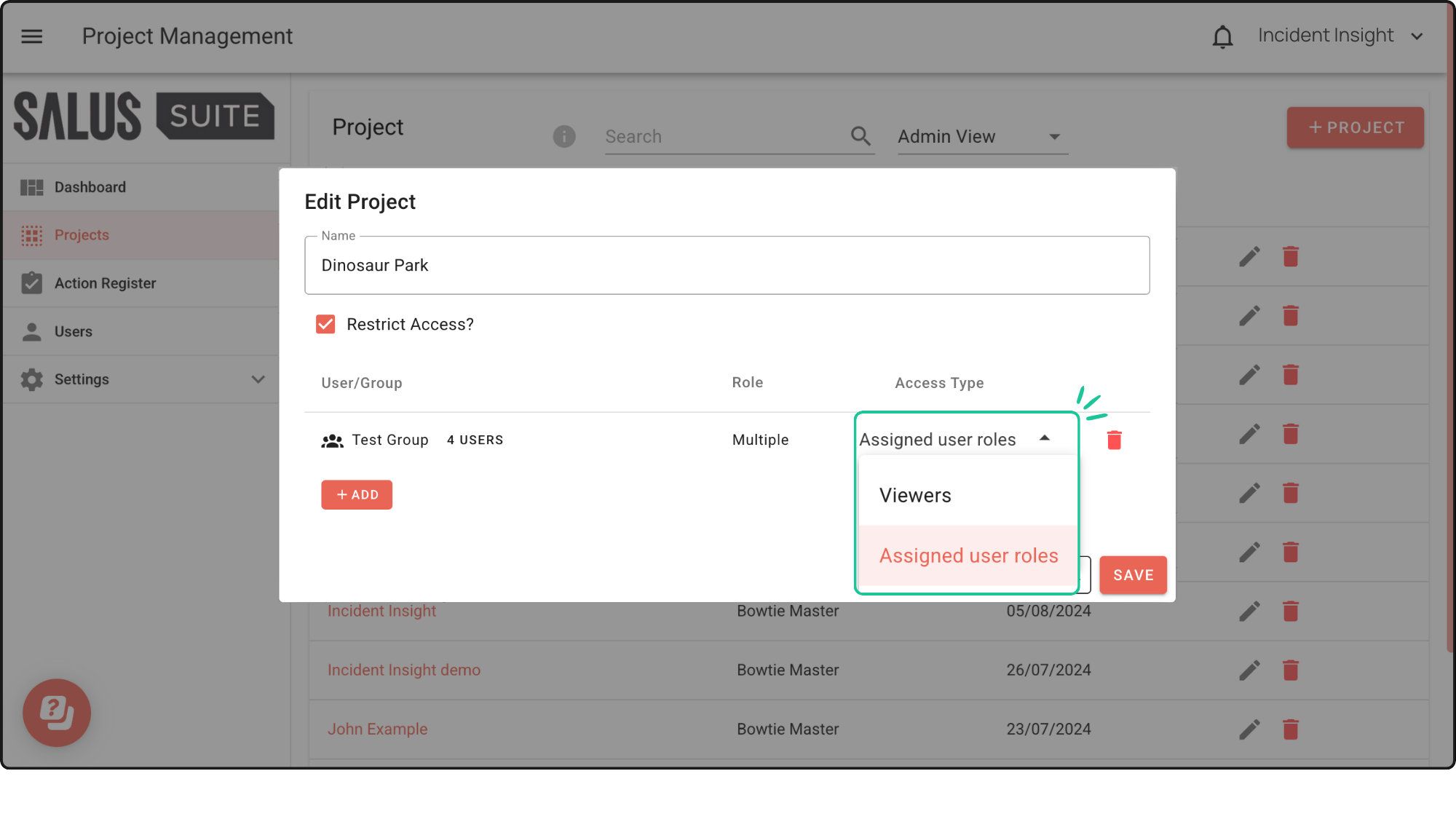 Creating user groups is now possible with Salus Suite. Easily manage access by assigning projects to groups, perfect for keeping specific people in the loop.