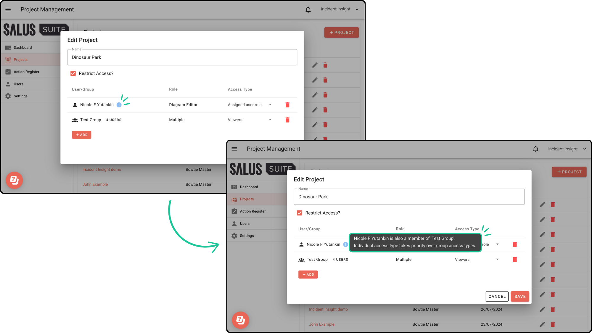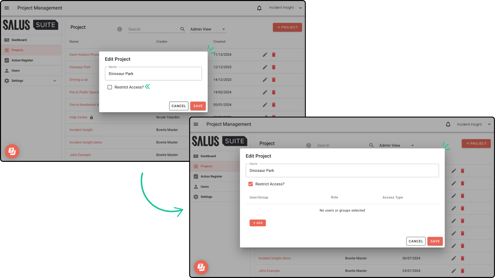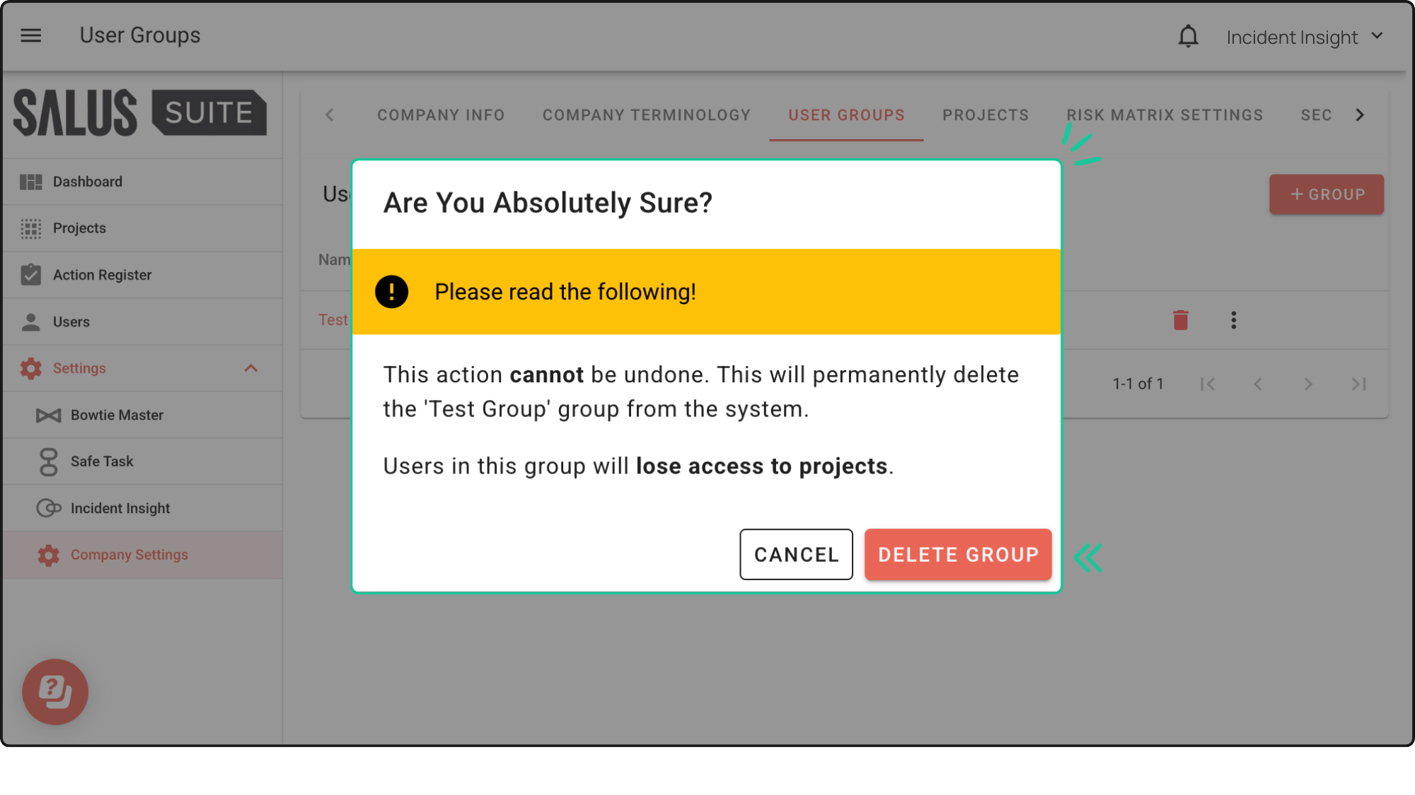 Creating user groups is now possible with Salus Suite. Easily manage access by assigning projects to groups, perfect for keeping specific people in the loop.