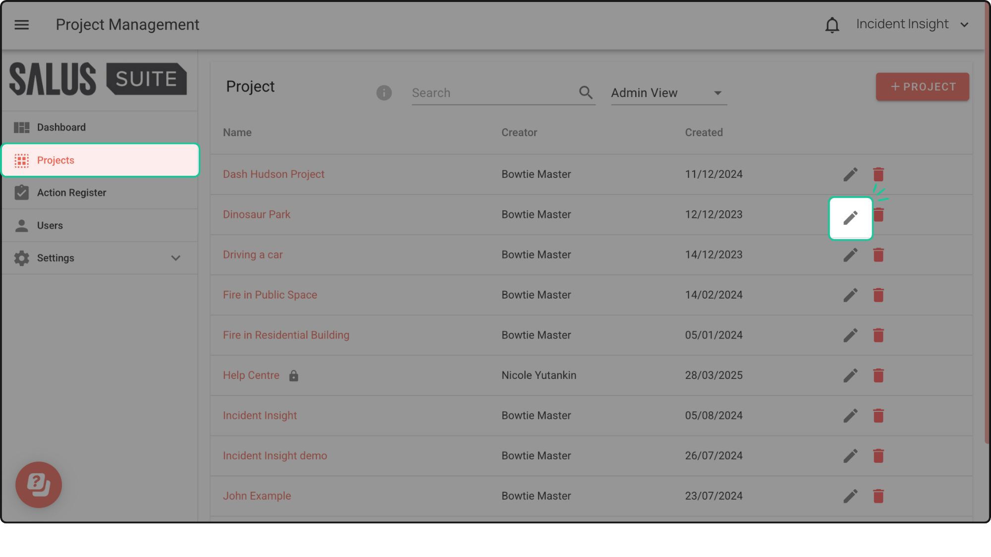 Step 2: Click Edit Project beside the project you wish to restrict.