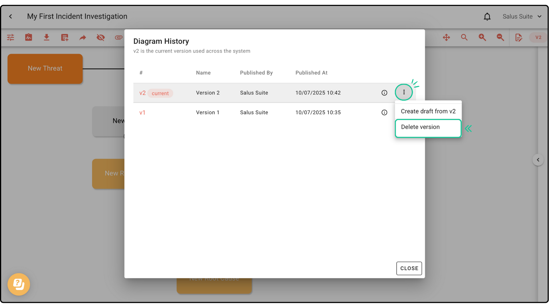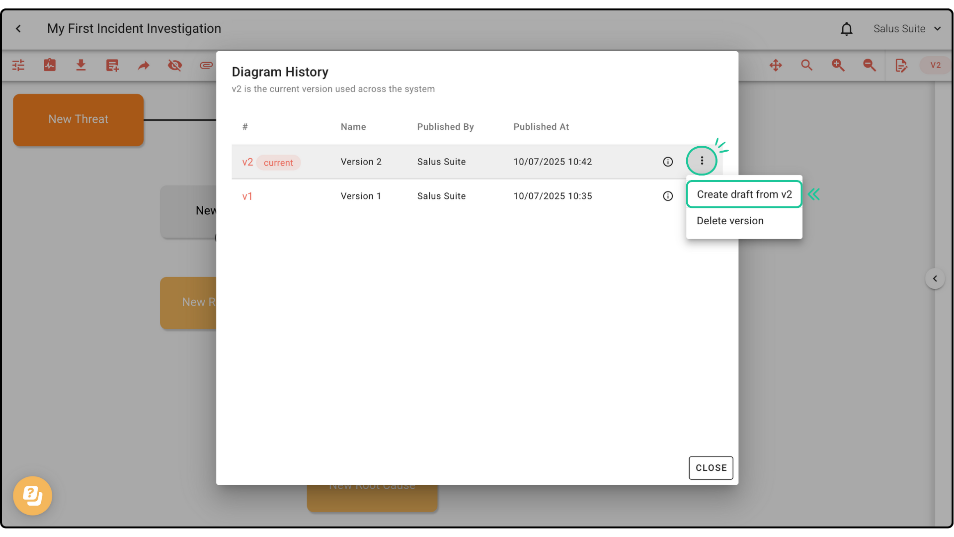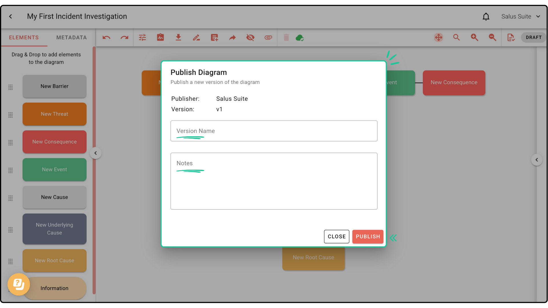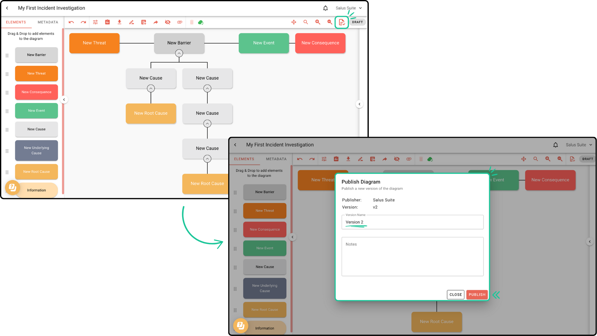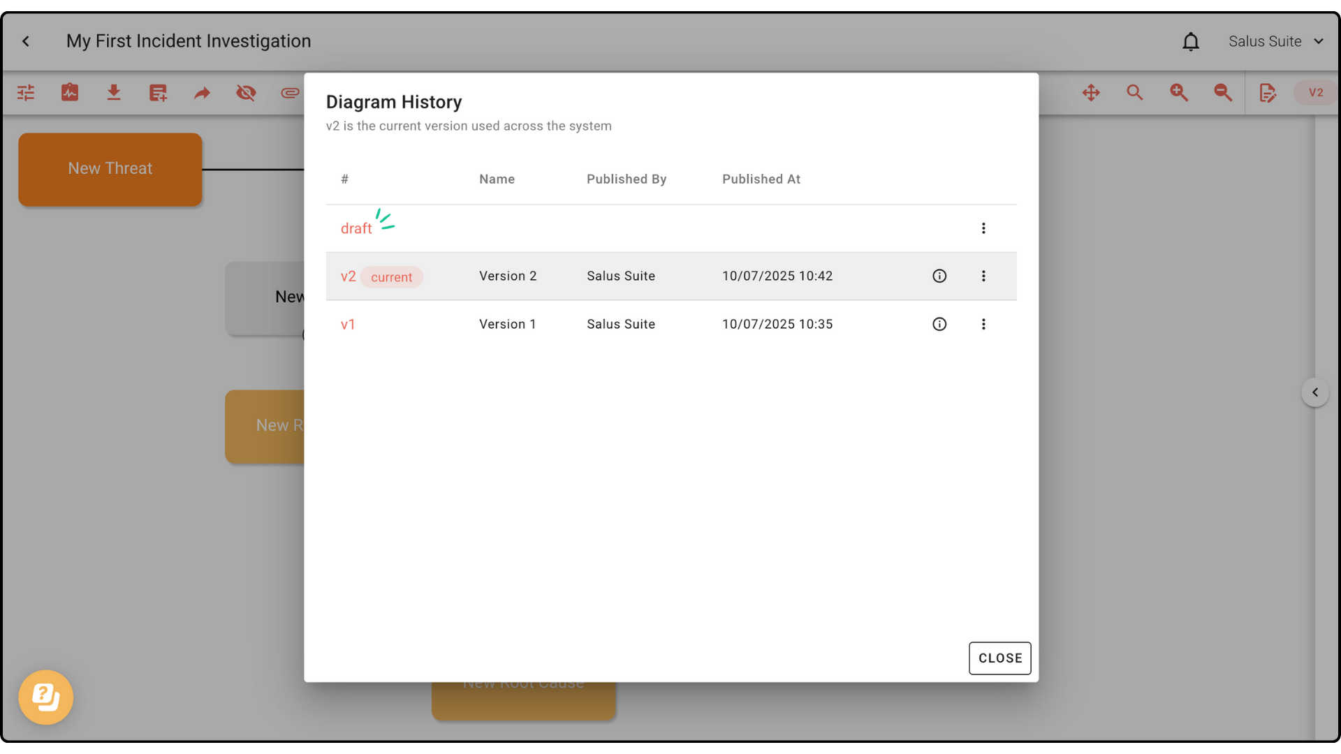 Create and manage multiple versions of your incident investigation diagram with Version Control. In this guide, we’ll show you how to create drafts, publish a diagram, and manage version history.Â