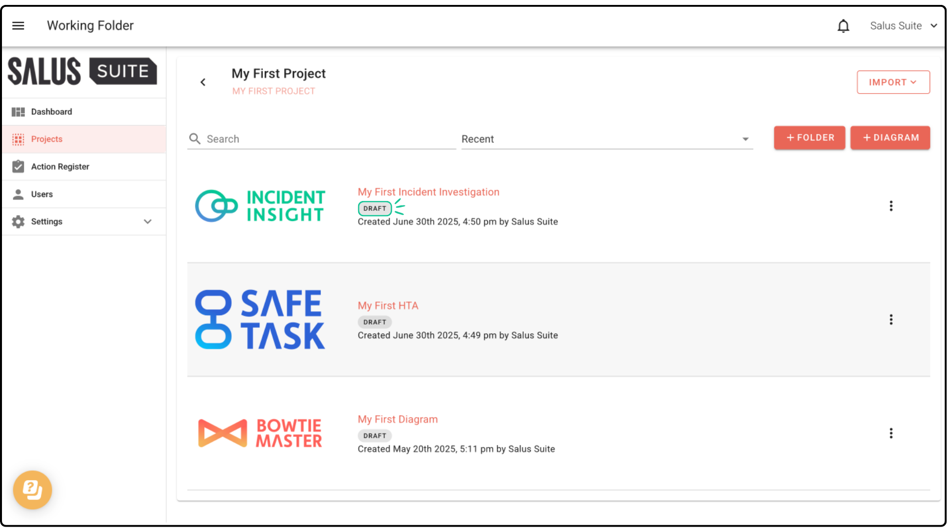 Note: When you create a new diagram, it starts as a Draft.