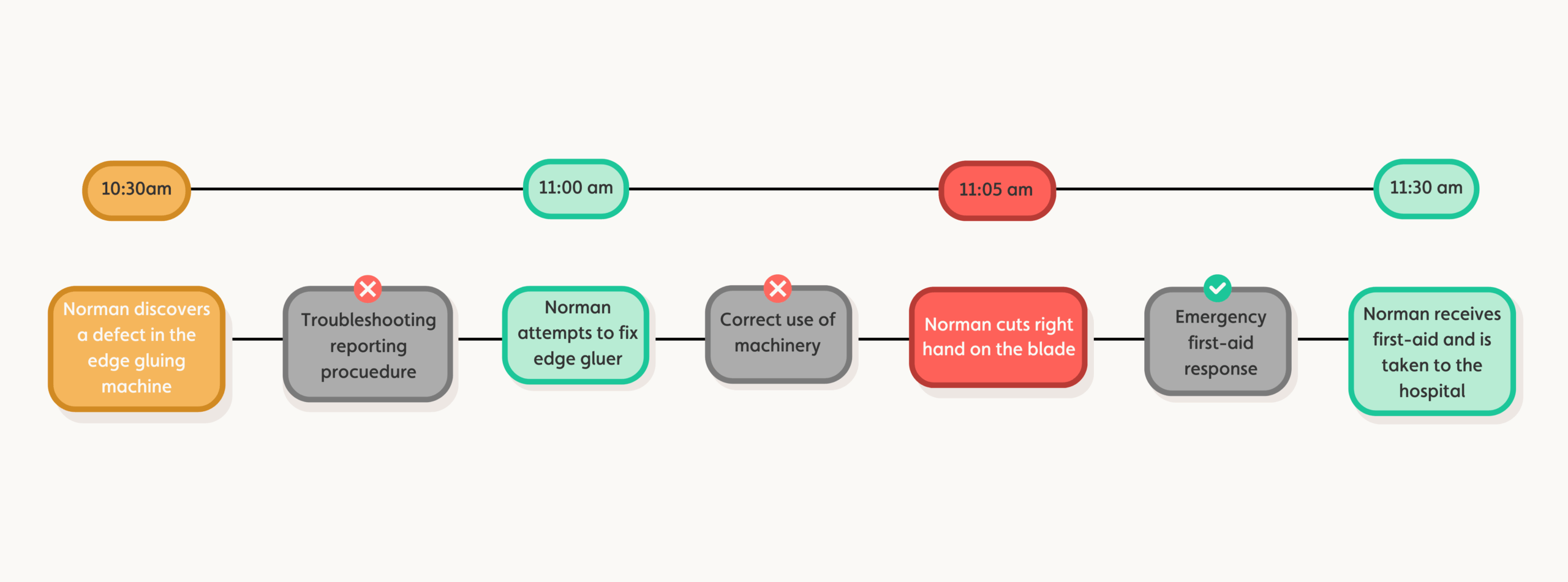 - Mark effective and failed barriers: Distinguish effective, partially effective, and failed barriers in your investigation with the ‘✅’ or ‘❎’ symbols on your element. This helps understand what caused barriers to fail.